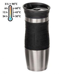 ₴507.52 – ₴507.52Металева термочашка з подвійними стійками з нержавіючої сталі і пластиковою прозорою кришкою з отвором. Кришку можна мити в посудомийній машині. Корпус мити тільки вручну, щоб не пошкодити кольорове покриття. Підтримує гарячим напій протягом 3 годин, холодним протягом 6 годин. Висота 11,4 см.- Індивідуальна упаковка: картонна коробка