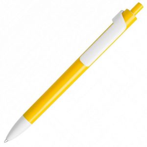 ₴17.76 – ₴18.27Витончена кулькова ручка із широким кліпом білого кольору. Велике поле для друку на корпусі та на кліпі. Корпус виготовлений із пластику. Тип стержня: пластиковий X-20. Механізм - кнопковий.