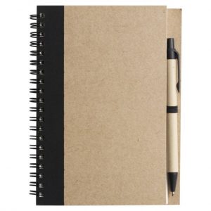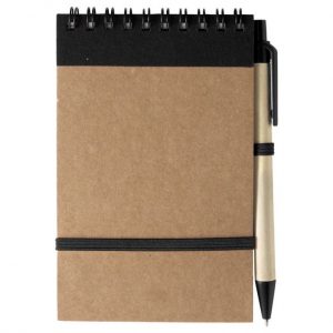 ₴522.11 – ₴522.11Блокнот з ручкою виготовлені з бамбука. Блокнот формату А5 з твердою обкладинкою, резинкою та тримачем кулькової ручки. Блок - із переробленого паперу, 140 аркушів щільністю 70 г/м² у лінійку. Механізм ручки - кнопковий. Колір чорнила ручки - синій. Індивідуальна упаковка - поліетиленовий пакет.- Вага: 0.221