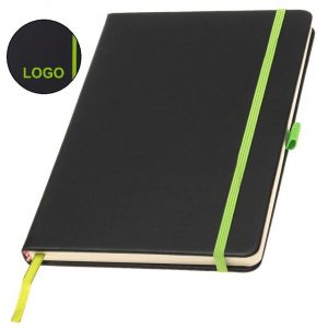₴343.00 – ₴343.00Записна книжка формату А5 з резинкою та закладкою. Можливе брендування обкладинки методом лазерного гравіювання в колір резинки.