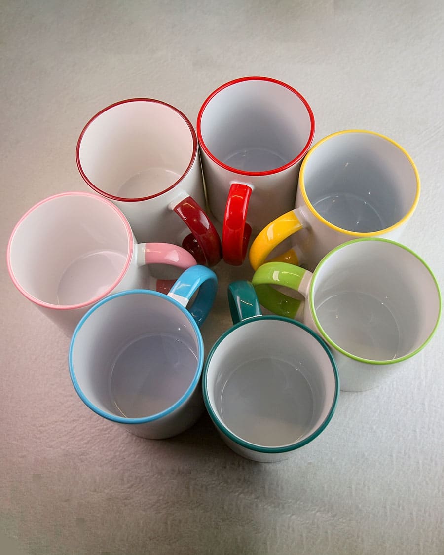 Друк на горнятах з білим покриттям, тоді як внутрішня сторона і ручка кольорові. Ціна трохи вище, ніж на білі кружки, але оригінальний і привабливий вигляд чашок того вартує.