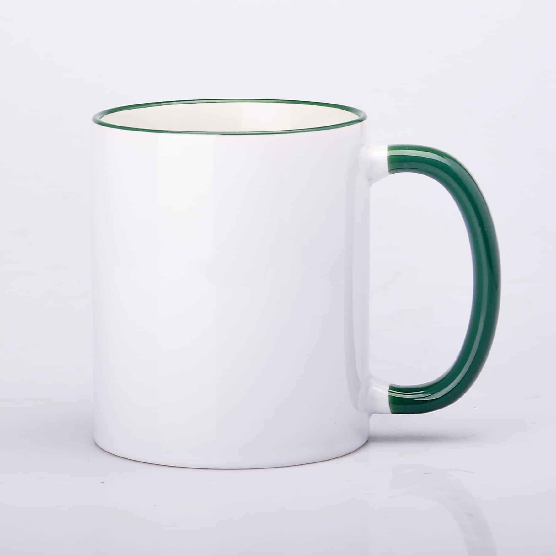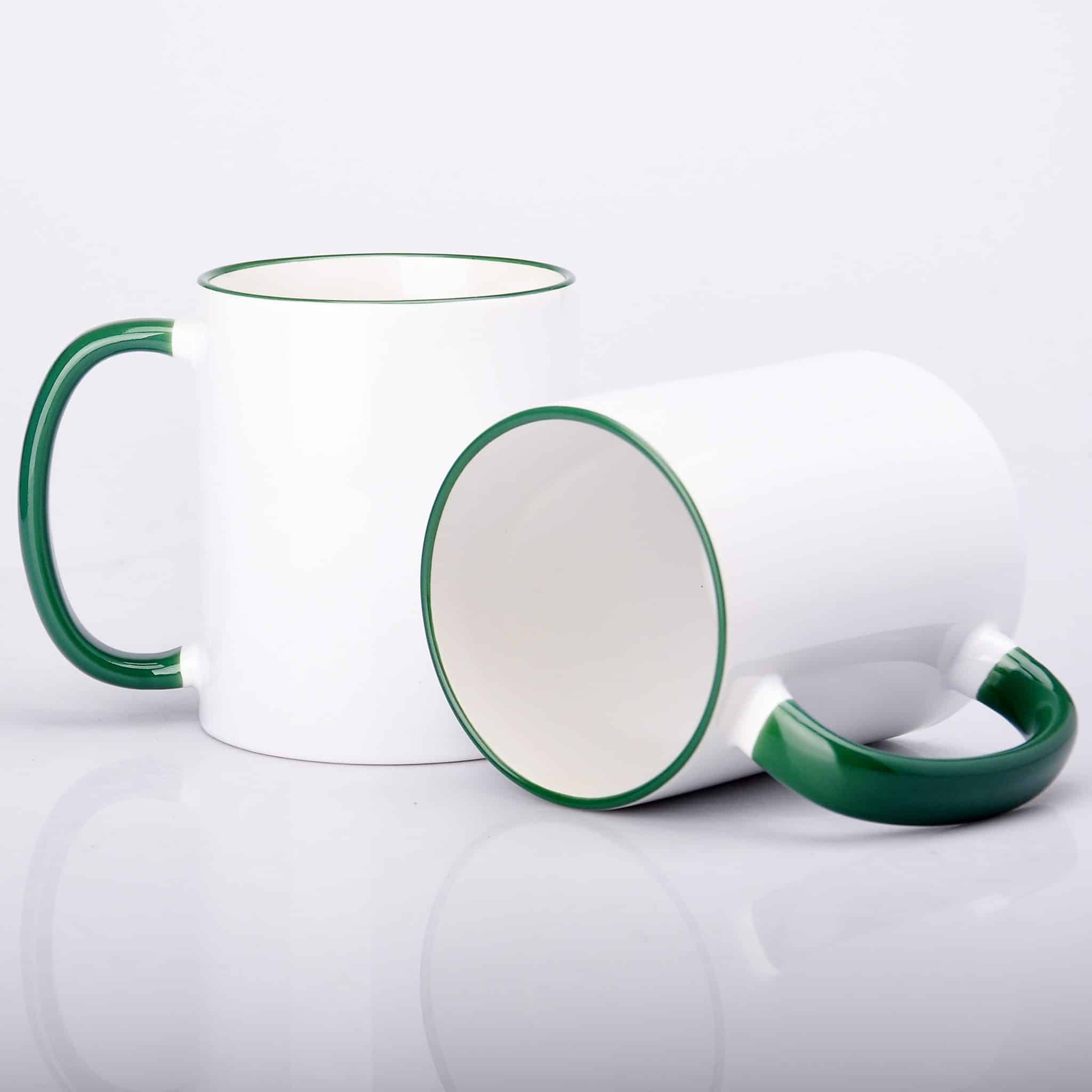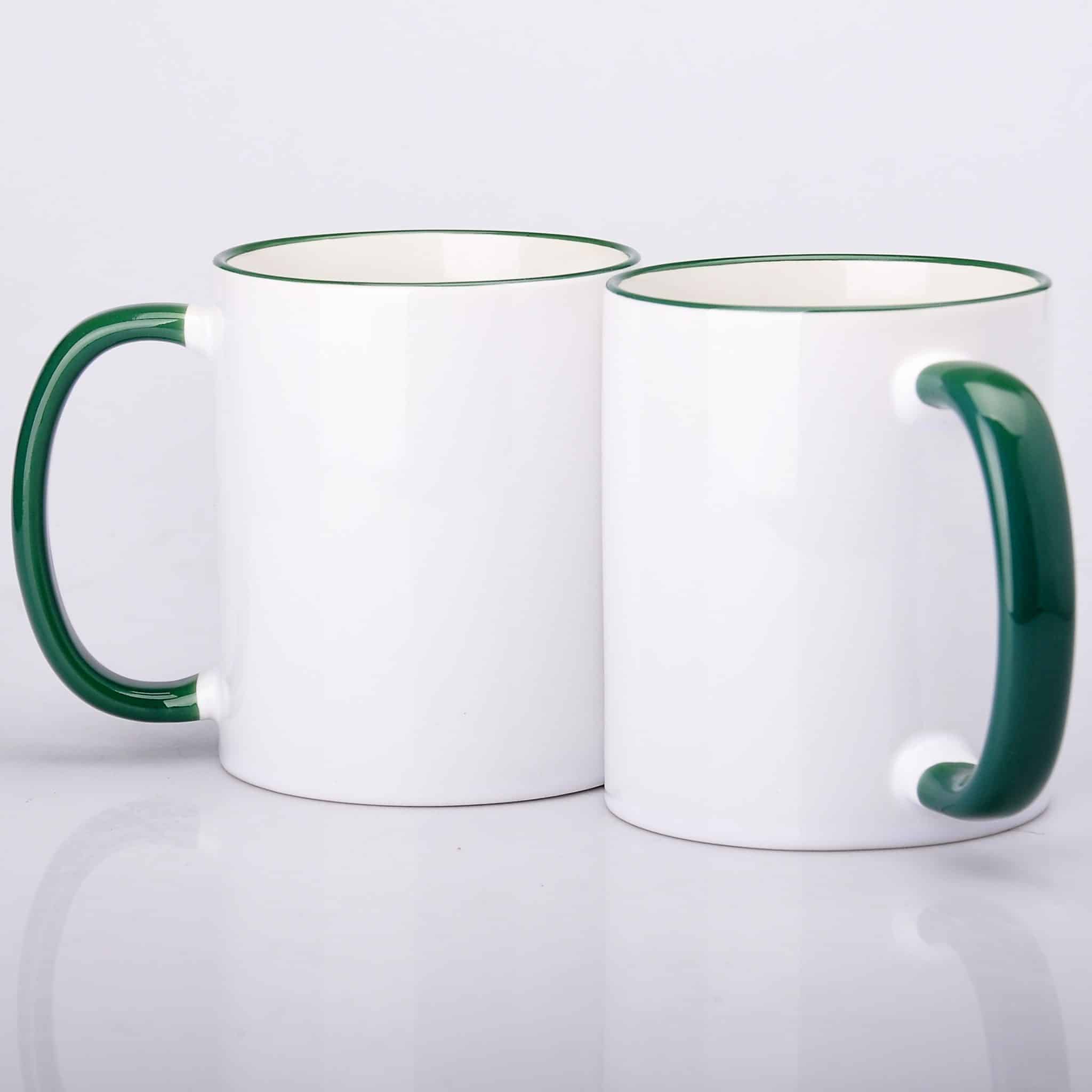 Друк на горнятах з білим покриттям, тоді як внутрішня сторона і ручка кольорові. Ціна трохи вище, ніж на білі кружки, але оригінальний і привабливий вигляд чашок того вартує.