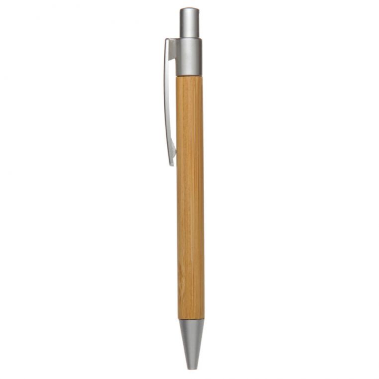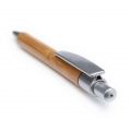 Багаторазова кулькова ручка з корпусом із бамбука та кольоровими пластиковими елементами. Матеріали: ABS-пластик, бамбук, дерево. Механізм – кнопковий.