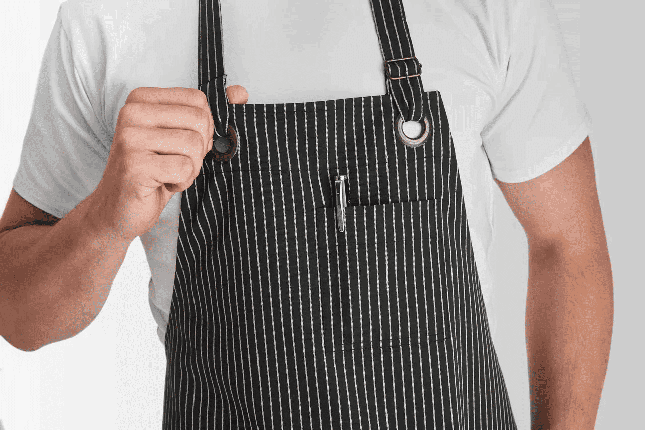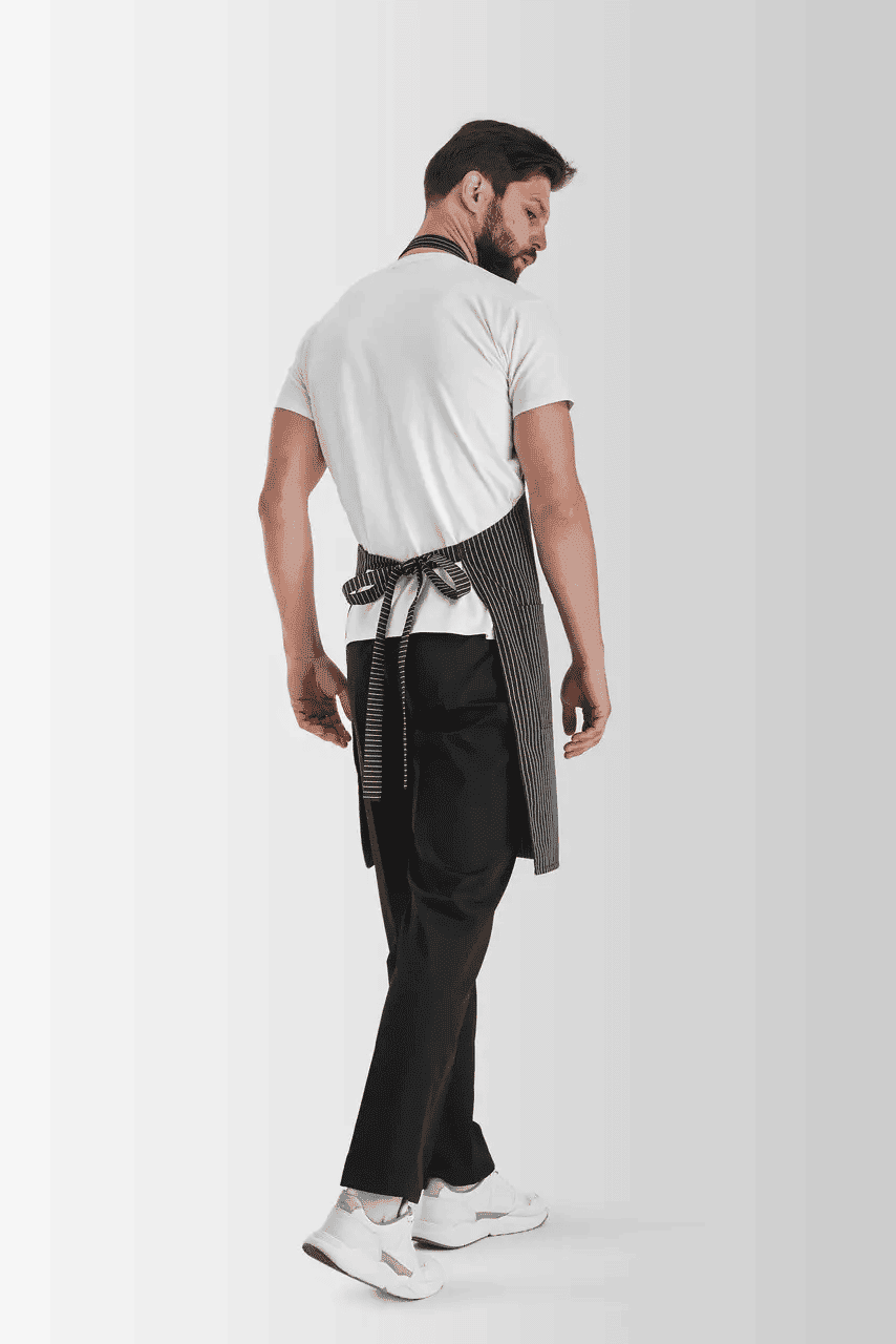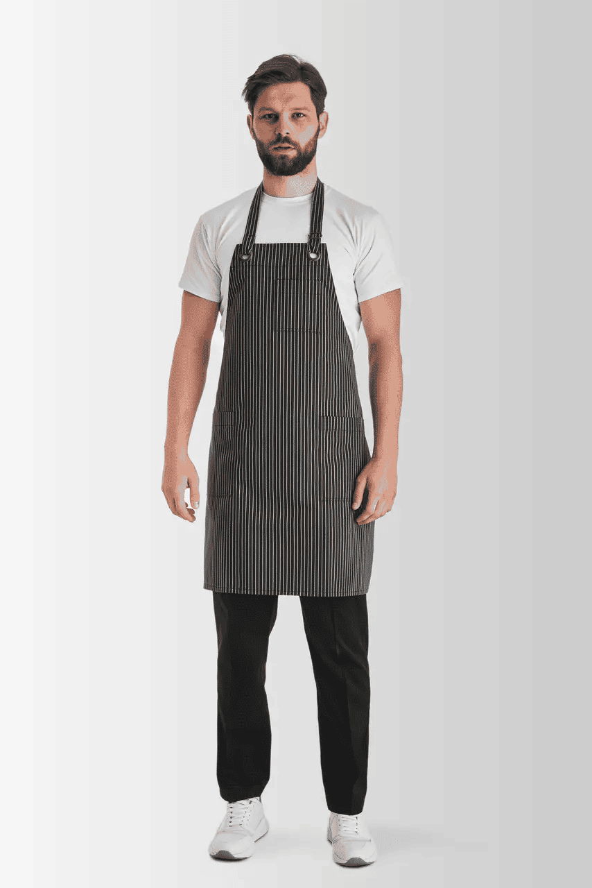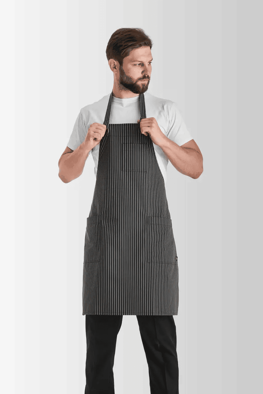 Фартух Fredo – зручний класичний фартух з нагрудником, для офіціантів, барменів, кухарів, майстрів барбершопу або салону.Ця модель створена для тих, хто цінує стриману класику у фасоні, проте розбавлену цікавою полоскою у кольорі.Фартух виконаний із професійної голландської тканини, яка приємна на дотик та виглядає дуже презентабельно. Є дві бокові кишені та одна нагрудна, для дрібних деталей. Висота регулюється металевою пряжкою.
