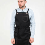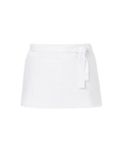 Фартух нижній Tiramisu для офіціанта, бариста, кухаря, продавця, одівається на пояс. Виготовлений з міцної саржевої тканини, зовнішня сторона якої виконана з поліефірної нитки, що гарантує високу зносостійкість і легкість очищення від забруднень. Фартух має довгі зав’язки на талії, які дозволяють регулювати ширину обхвату. Спереду по центру є об’ємна кишеня, на три відділи.