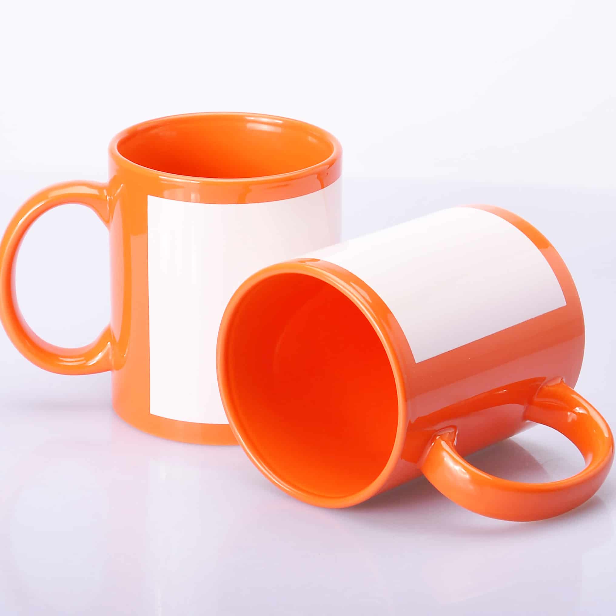 Друк на горнятах з білим покриттям на виділеній панелі, тоді як внутрішня сторона, частина горнятка та ручка кольорові. Дозволяє досягти ефекту повної заливки. Керамічні чашки з полімерним покриттям, для сублімації, кольорові, з білим полем для друку. Покриття горняток стійке до ударів, миття в гарячій воді і посудомийній машині із застосуванням різних мийних засобів. При цьому поверхневий шар з картинкою не розкладається і не завдає шкоди здоров’ю. Висока якість друку, зображення не тьмяніє і не псується при тривалому використанні. Екологічність і безпека для здоров’я.
