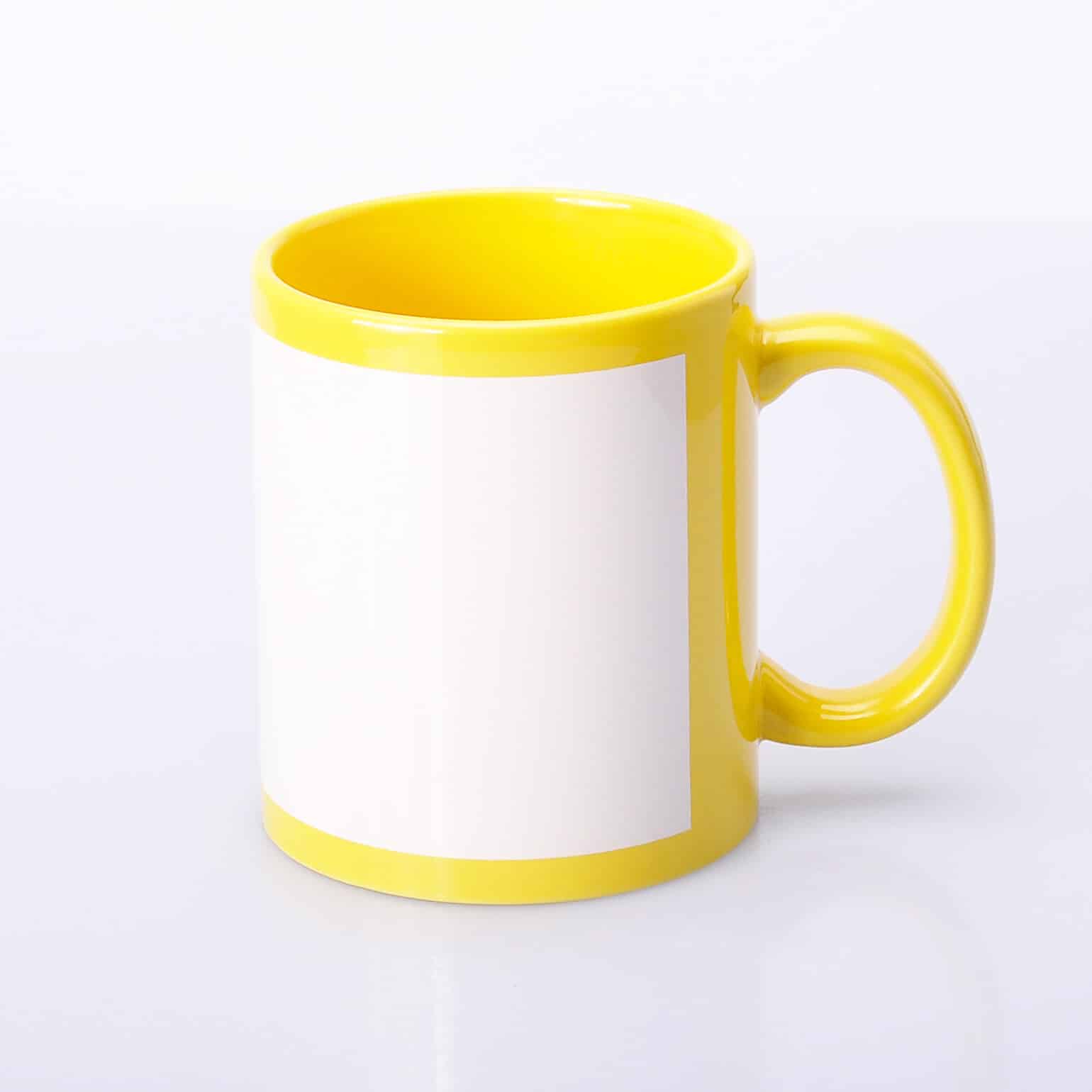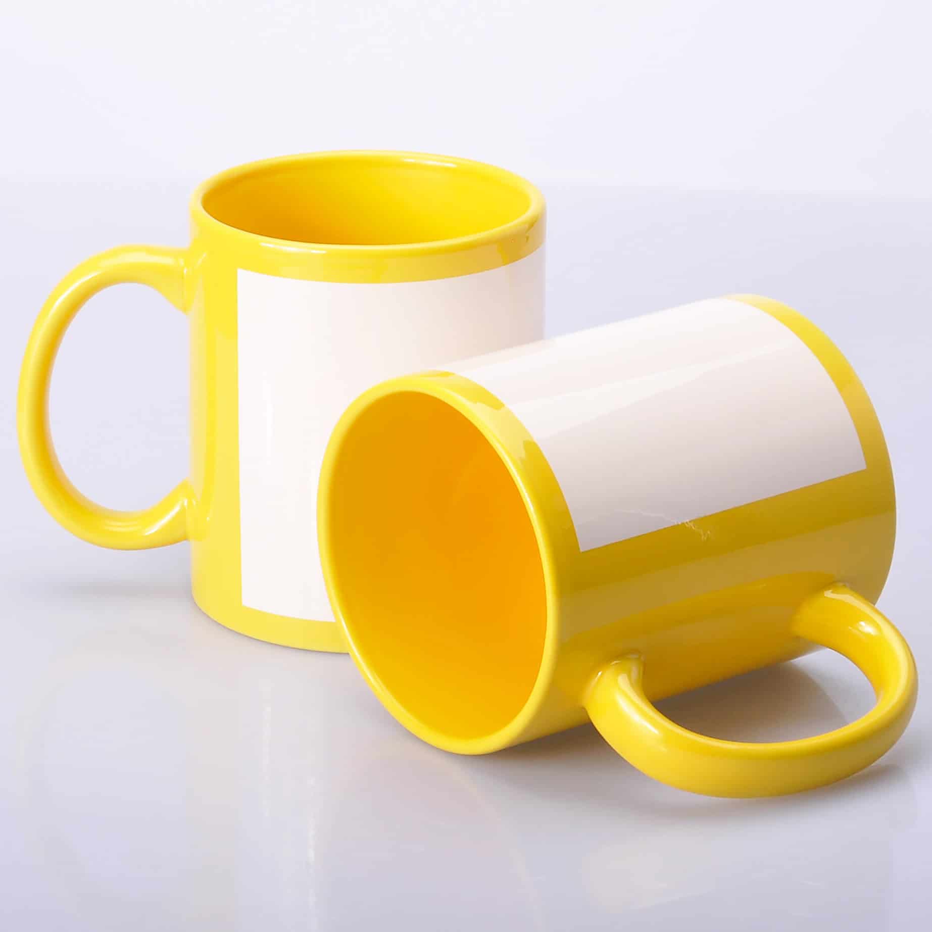 Друк на горнятах з білим покриттям на виділеній панелі, тоді як внутрішня сторона, частина горнятка та ручка кольорові. Дозволяє досягти ефекту повної заливки. Керамічні чашки з полімерним покриттям, для сублімації, кольорові, з білим полем для друку. Покриття горняток стійке до ударів, миття в гарячій воді і посудомийній машині із застосуванням різних мийних засобів. При цьому поверхневий шар з картинкою не розкладається і не завдає шкоди здоров’ю. Висока якість друку, зображення не тьмяніє і не псується при тривалому використанні. Екологічність і безпека для здоров’я.