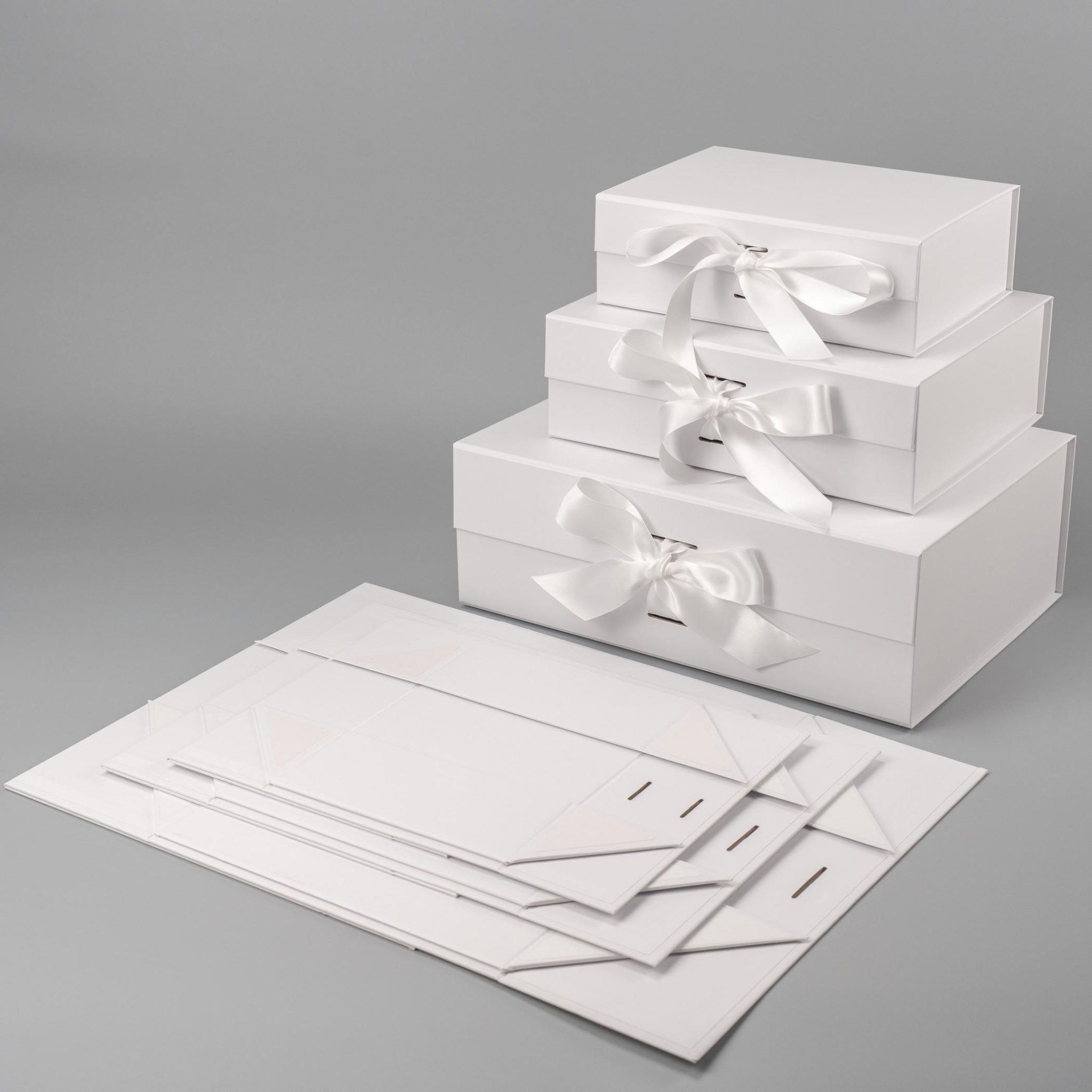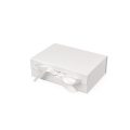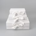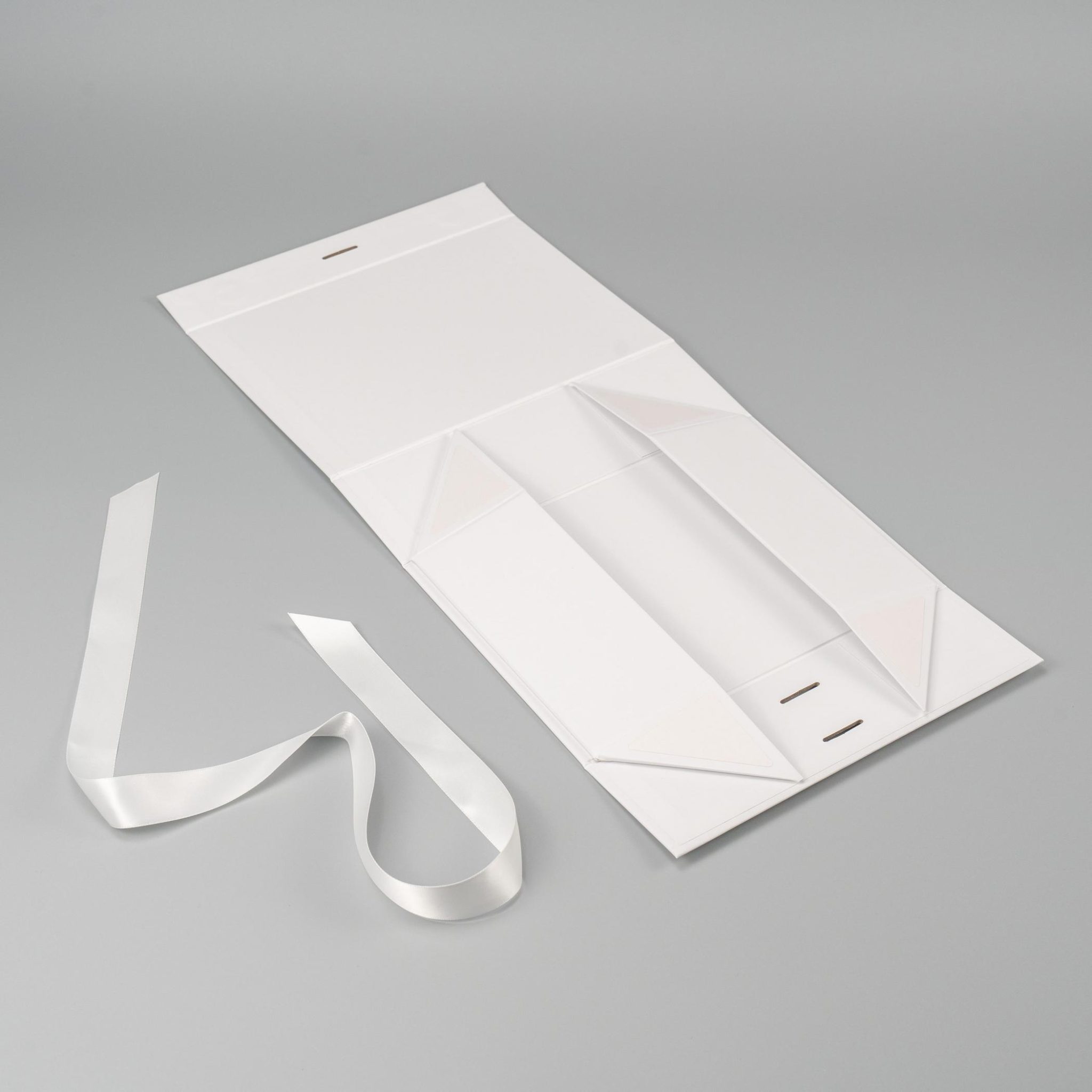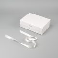 Коробка складна з твердого, переплетеного картону, вкрита дизайнерським папером, атласна лента ширина 2,5 см. Кришка на магнітах.