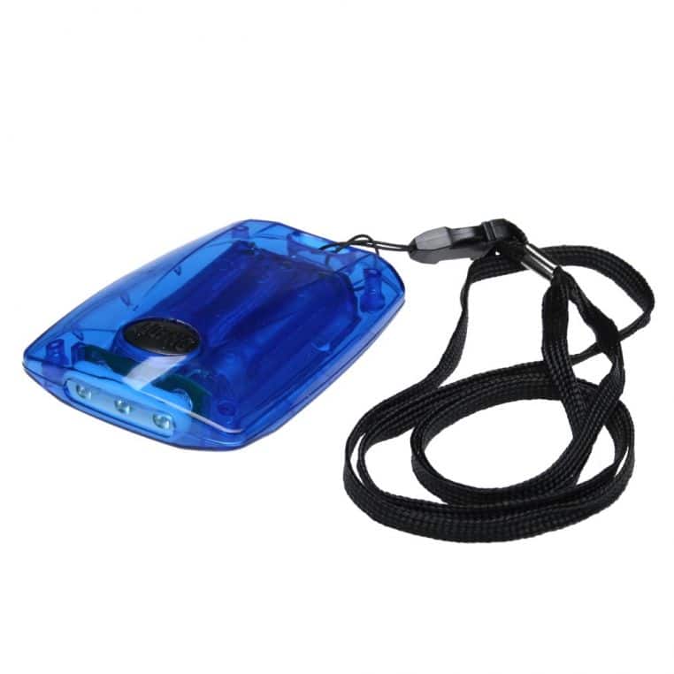 Ліхтарик у плоскому пластиковому корпусі з трьома світлодіодами. Містить довгий нашийний шнурок.