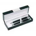 Набір ручок ‘MANZONI’, що складається з кулькової ручки та перової ручки. Набір упакований у подарунковий футляр з алюмінієвою вставкою. Механізм кулькової ручки – поворотний. Перова ручка – без механізму, зі знімним ковпачком.