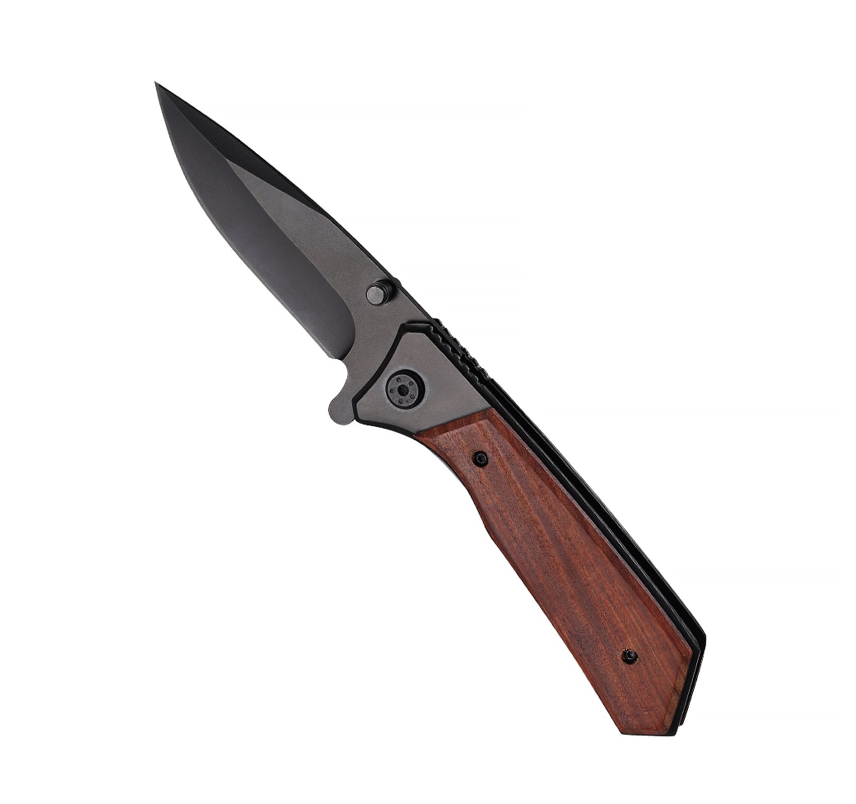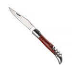 Ніж з високоякісної нержавіючої сталі, гострим лезом з фіксатором, кліпсою для чіпляння на ремінь. Тримач з дерев’яними вставками. Розмір леза 9 см., розмір в закритому стані 12Х3,7Х2 см