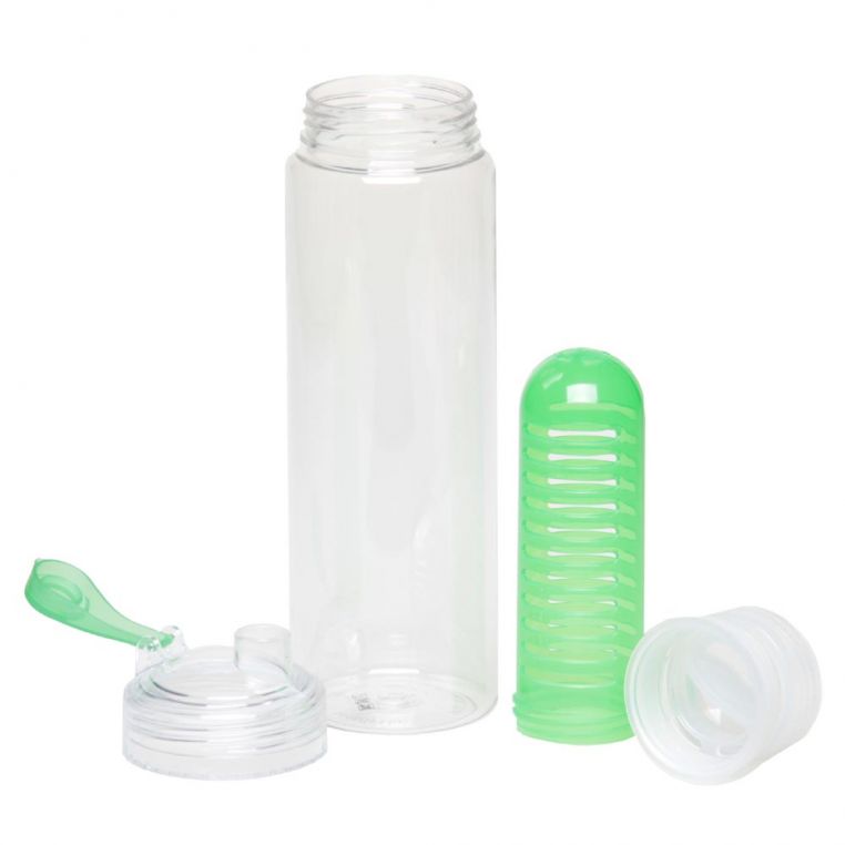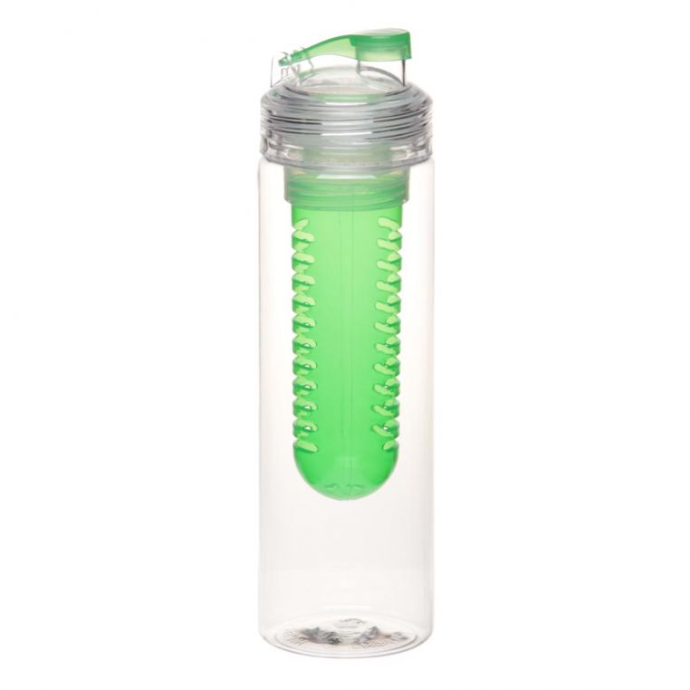 Пляшка для пиття з тритану – міцного матеріалу, стійкого до плям, подряпин і запахів. Контейнер для фруктів (інфузор) всередині пляшки дозволить легко зробити корисні, смачні напої. Отвір для пиття захищено кришкою, що відкривається. Підходить для активного відпочинку та занять спортом.