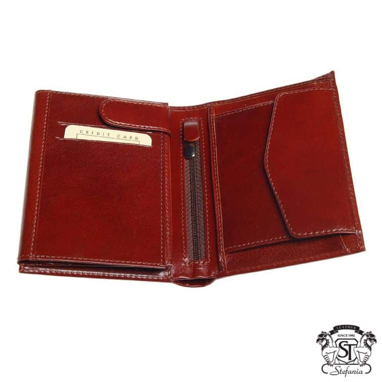 Чоловіче портмоне із натуральної шкіри. Містить два відділення для купюр, дві кишені, одну кишеню на блискавці, дев’ять слотів для карток та два вікна для посвідчень.