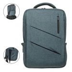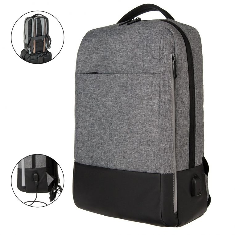 Двоколірний рюкзак для ноутбука 14″ має основне відділення з кишенями-органайзерами. Зовнішній відділ на вертикальній світловідбиваючій блискавці та містка передня кишеня. Збоку рюкзака є вбудований USB-порт з кабелем всередині для зручної зарядки гаджетів. На спинці є кріплення на ручку валізи. Дві м’які регульовані наплічні лямки.