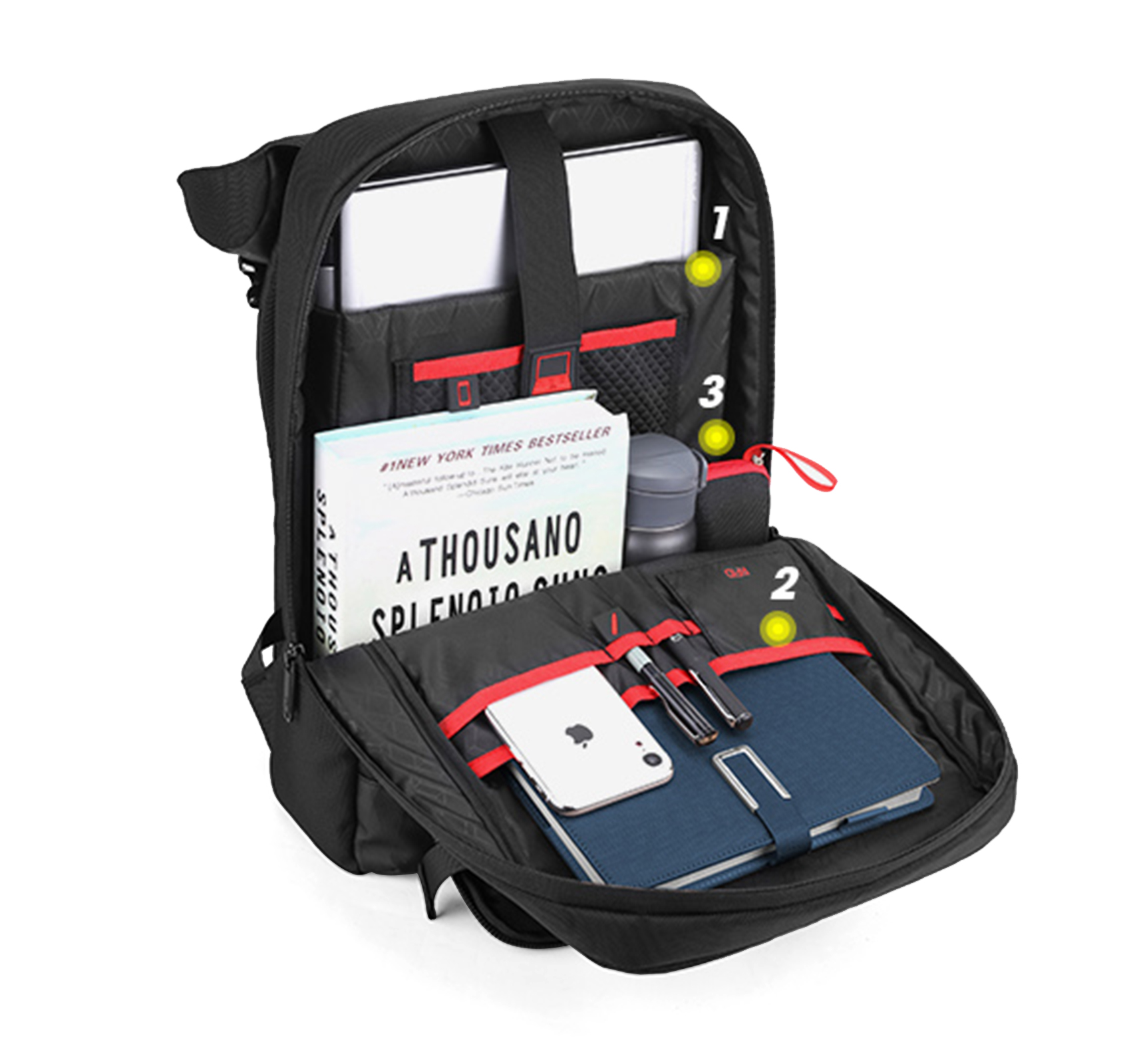 Рюкзак з відділенням для ноутбука 15,6” та відділенням для ipad .Тканина водонепроникний 100% поліестер + PU, має USB Port, великий відділ та різні кармани органайзери, кишеня Anti theft (RFID) ,прихована кишеня на лямці для карток, на задній спинці ремінь для валізи.