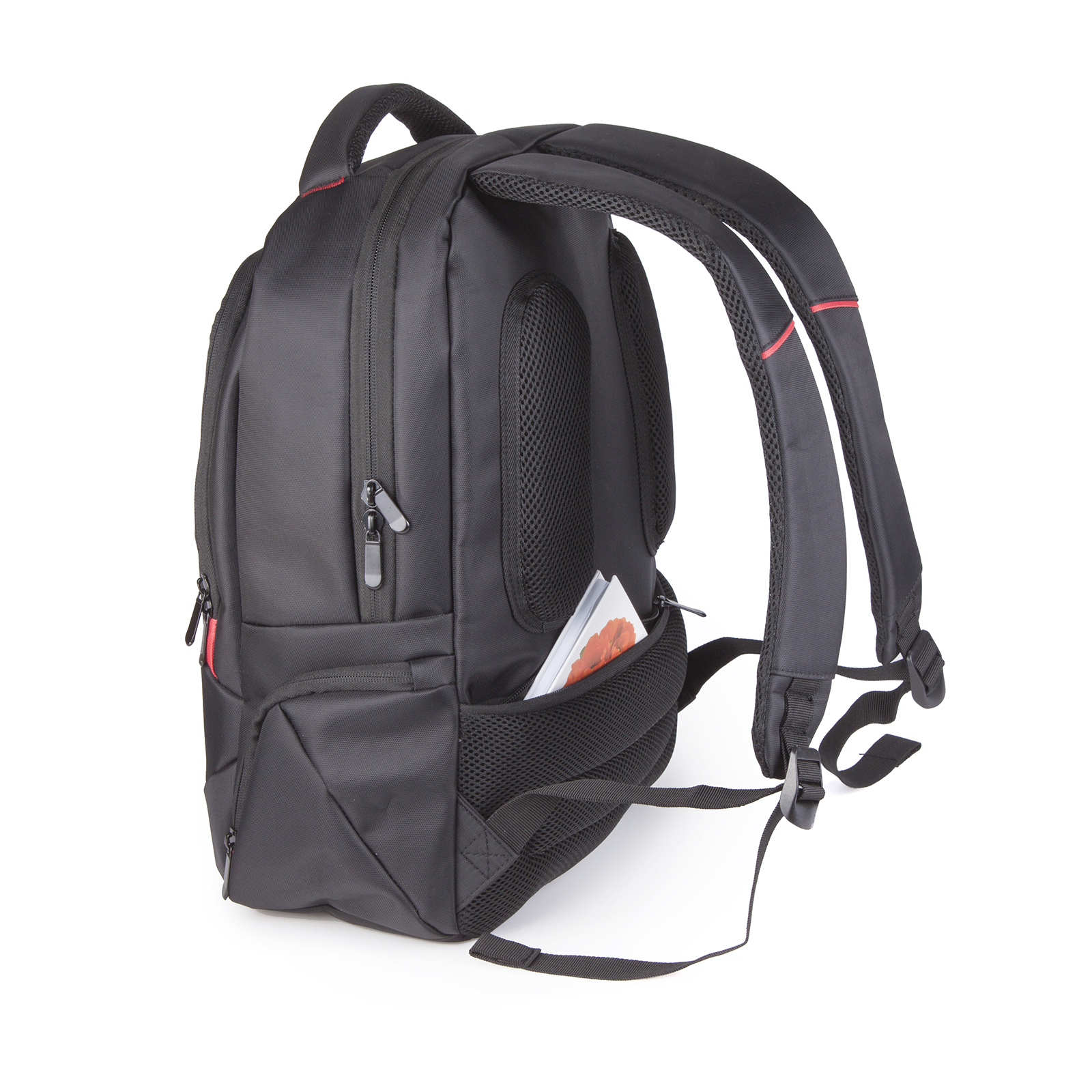 Рюкзак для ноутбука 15”. Одне велике відділення з розділювачем для ноутбука, 2 бокові кишені для дрібних речей, одна кишеня попереду. М’яка спинка з прихованию кишенею та лямки з пасивною системою вентиляції. Ущільнена м’яка підкладка.