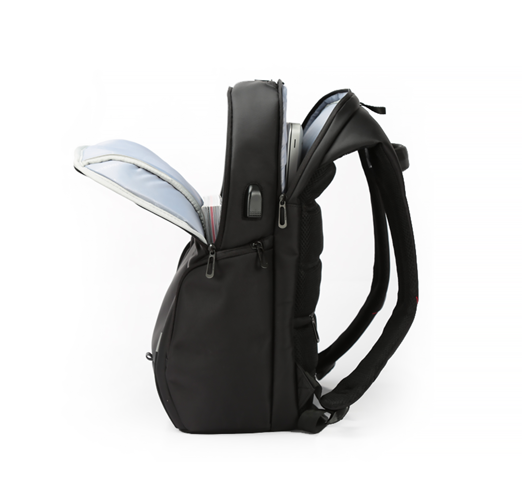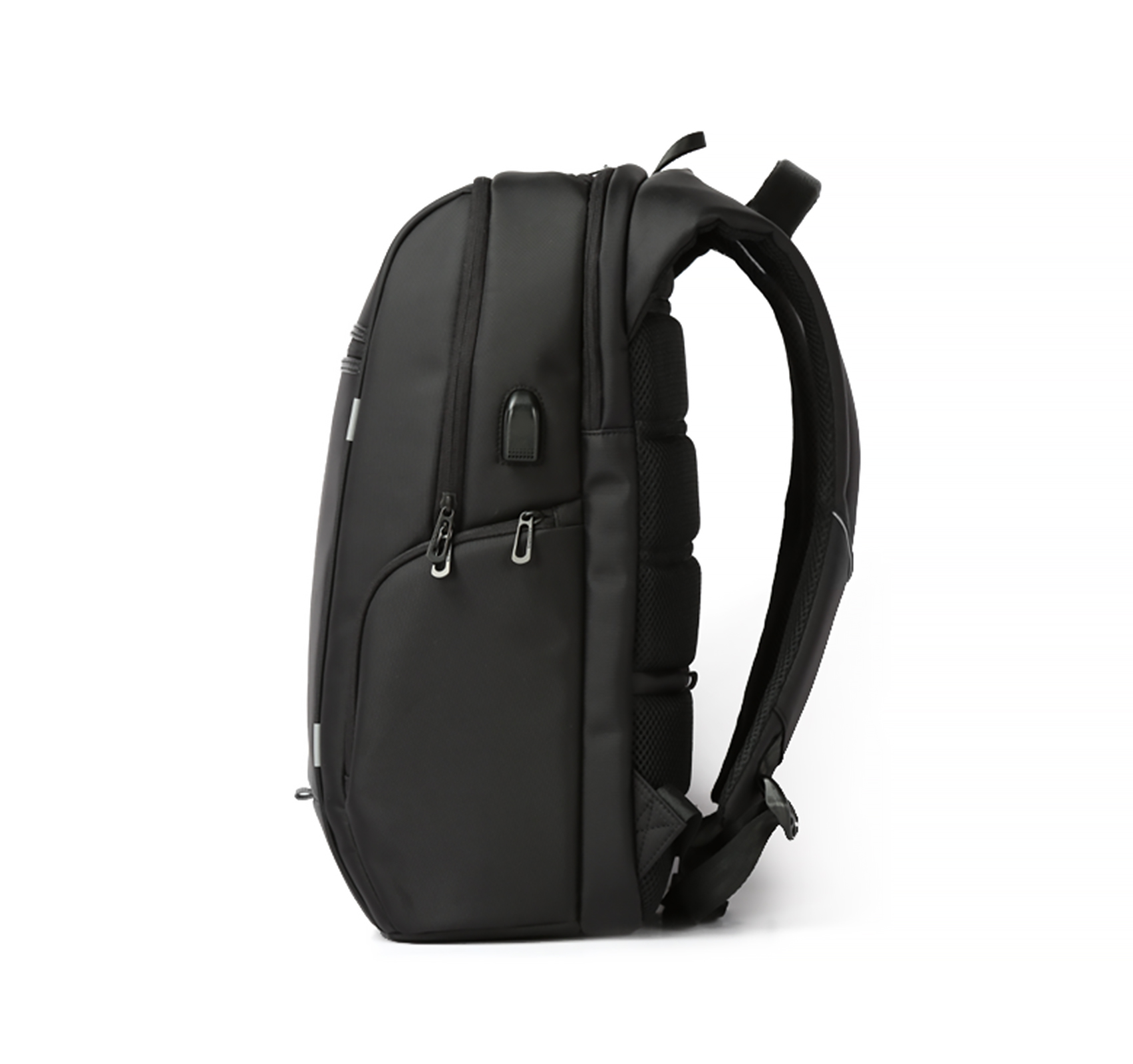Рюкзак для ноутбука 15,6’’. Одне велике відділення, відділення для ноутбука, одна кишеня попереду. М’яка спинка та лямки з пасивною системою вентиляції. Ущільнена м’яка підкладка. Вбудований USB-порт для зарядки. Отвір для навушників. Світловідбиваючі елементи. Матеріал: Нейлон 600D + PU