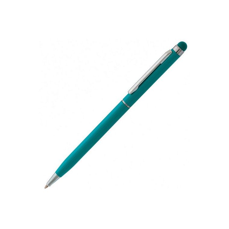 Ручка-стилус в алюмінієвому корпусі. Тип стрижня – кульковий. Ручка підходить для роботи із сенсорним екраном. Матеріали: метал, алюміній, гума. Механізм – поворотний.