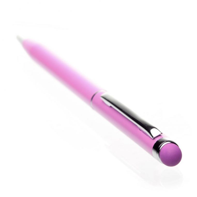Ручка-стилус в алюмінієвому корпусі. Тип стрижня – кульковий. Ручка підходить для роботи із сенсорним екраном. Матеріали: метал, алюміній, гума. Механізм – поворотний.