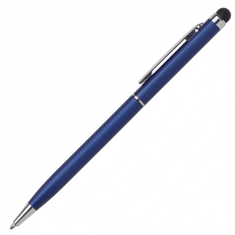 Ручка-стилус в алюмінієвому корпусі. Тип стрижня – кульковий. Ручка підходить для роботи із сенсорним екраном. Матеріали: метал, алюміній, гума. Механізм – поворотний.