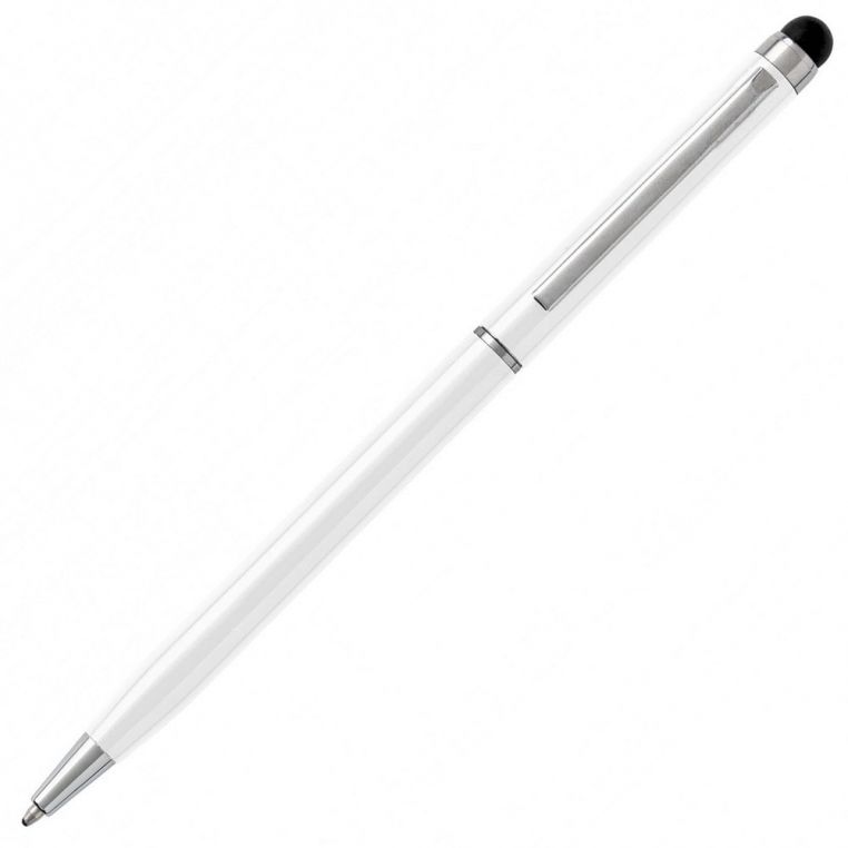 Ручка-стилус в алюмінієвому корпусі. Тип стрижня – кульковий. Ручка підходить для роботи із сенсорним екраном. Матеріали: метал, алюміній, гума. Механізм – поворотний.