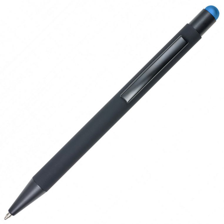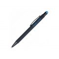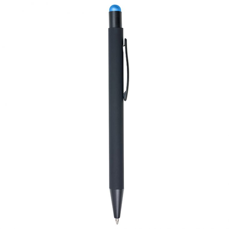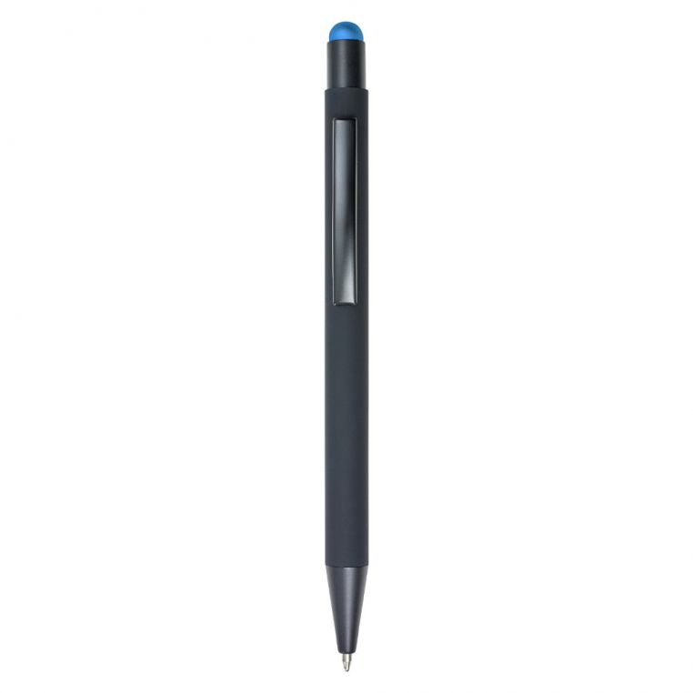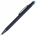 Кулькова прогумована ручка-стилус з алюмінію з кольоровим гумовим наконечником для роботи з сенсорним екраном. Кольорове гравіювання. Матеріали: алюміній, метал. Механізм – кнопковий.