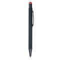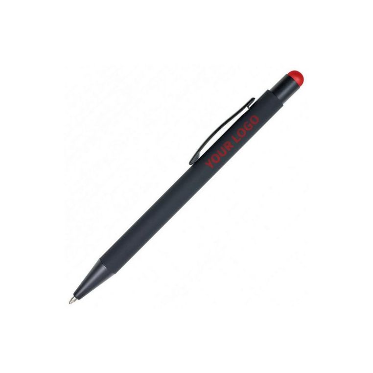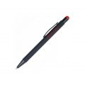 Кулькова прогумована ручка-стилус з алюмінію з кольоровим гумовим наконечником для роботи з сенсорним екраном. Кольорове гравіювання. Матеріали: алюміній, метал. Механізм – кнопковий.