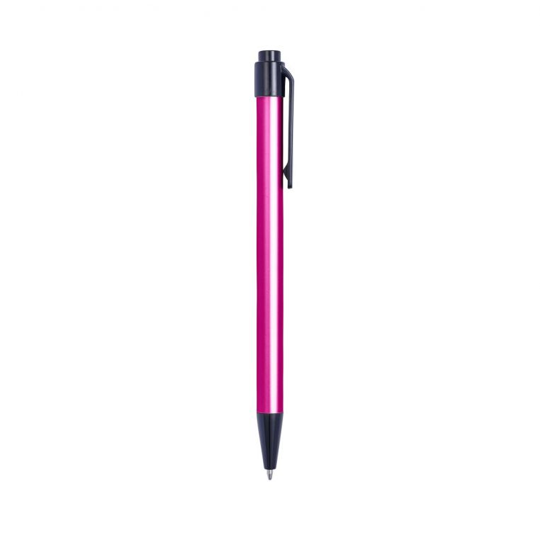 Алюмінієва кулькова ручка. Пластиковий кліп та носик. Механізм – кнопковий.