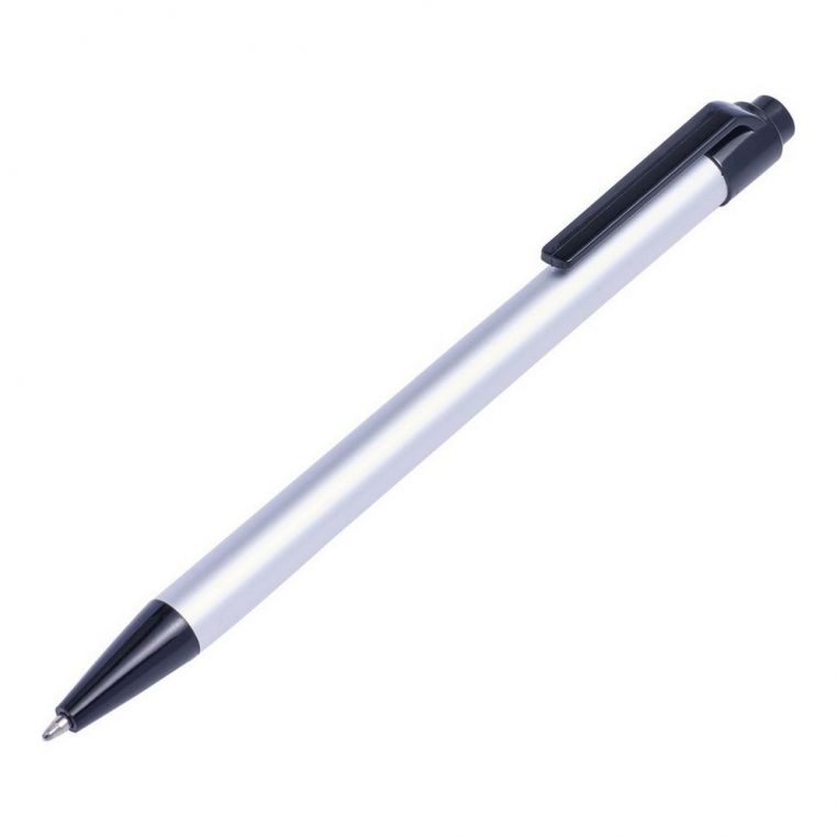 Алюмінієва кулькова ручка. Пластиковий кліп та носик. Механізм – кнопковий.