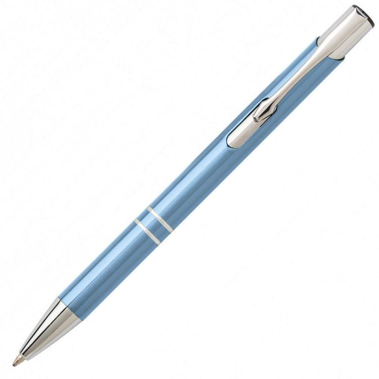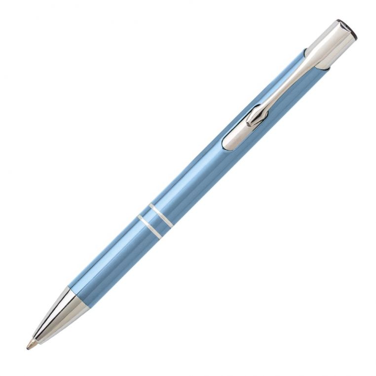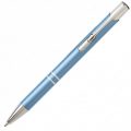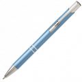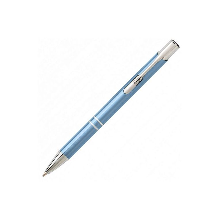 Алюмінієва кулькова ручка високої якості. Кліп та носик срібного кольору. Матеріали: алюміній, метал. Механізм – кнопковий.
