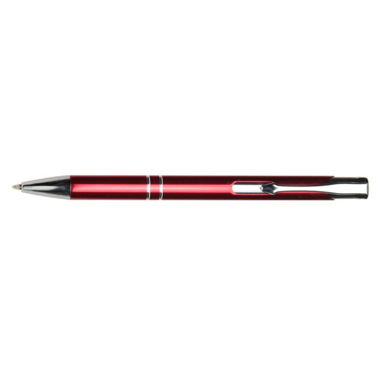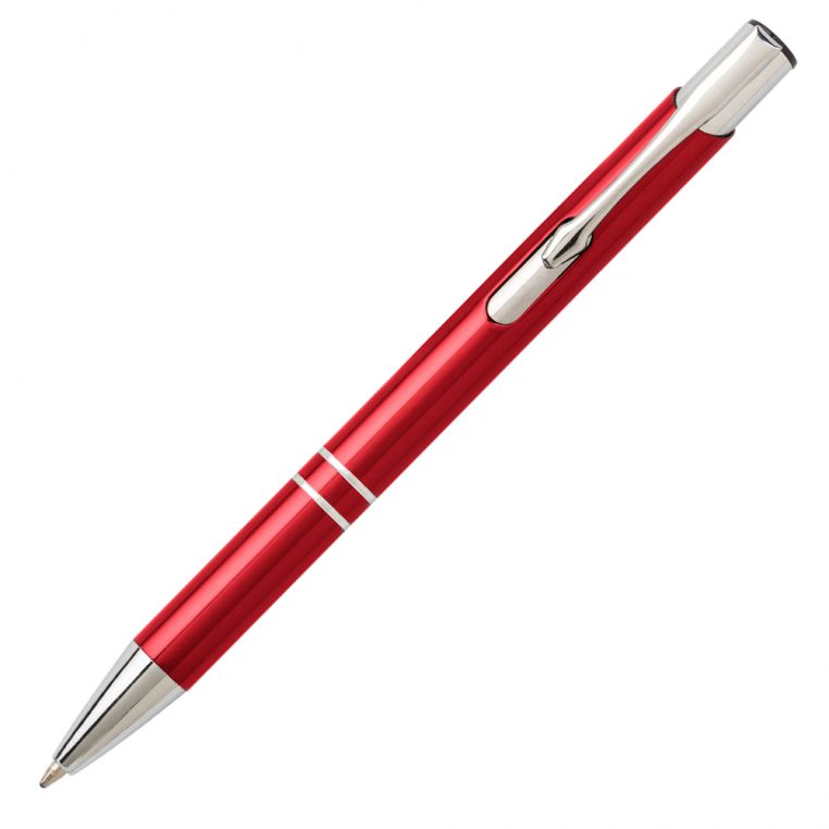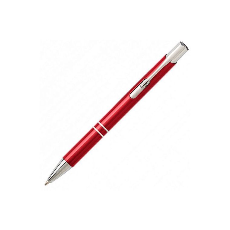 Алюмінієва кулькова ручка високої якості. Кліп та носик срібного кольору. Матеріали: алюміній, метал. Механізм – кнопковий.