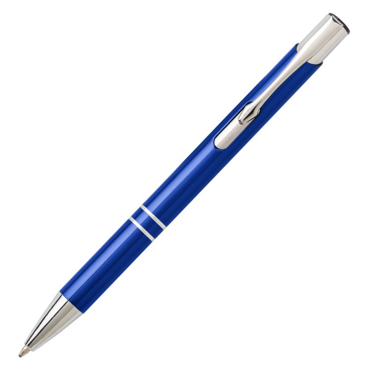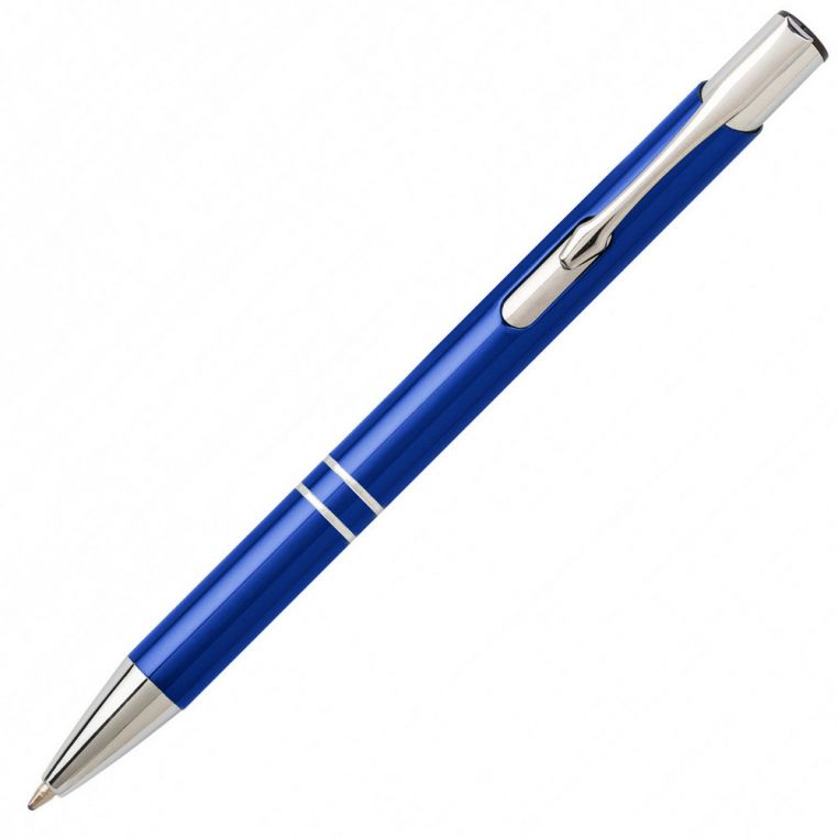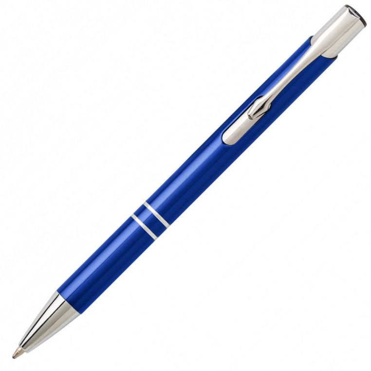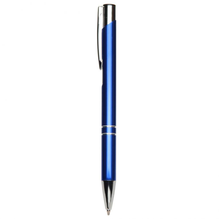 Алюмінієва кулькова ручка високої якості. Кліп та носик срібного кольору. Матеріали: алюміній, метал. Механізм – кнопковий.