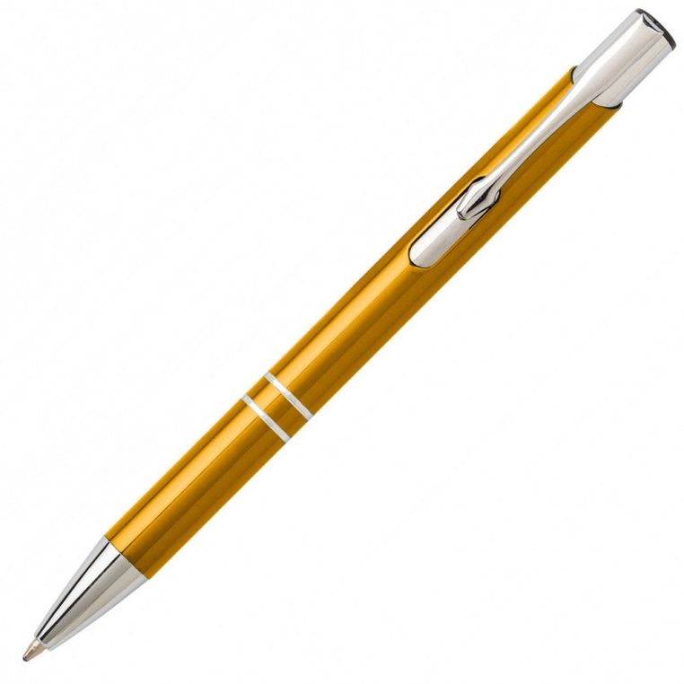 Алюмінієва кулькова ручка високої якості. Кліп та носик срібного кольору. Матеріали: алюміній, метал. Механізм – кнопковий.