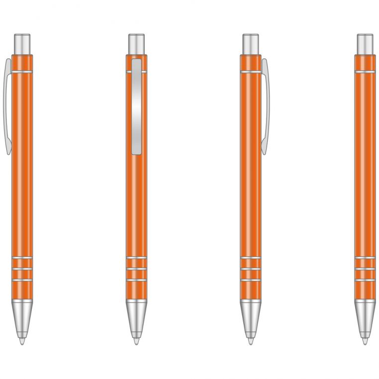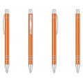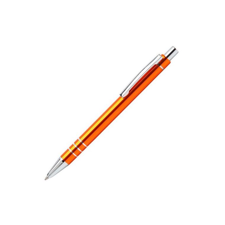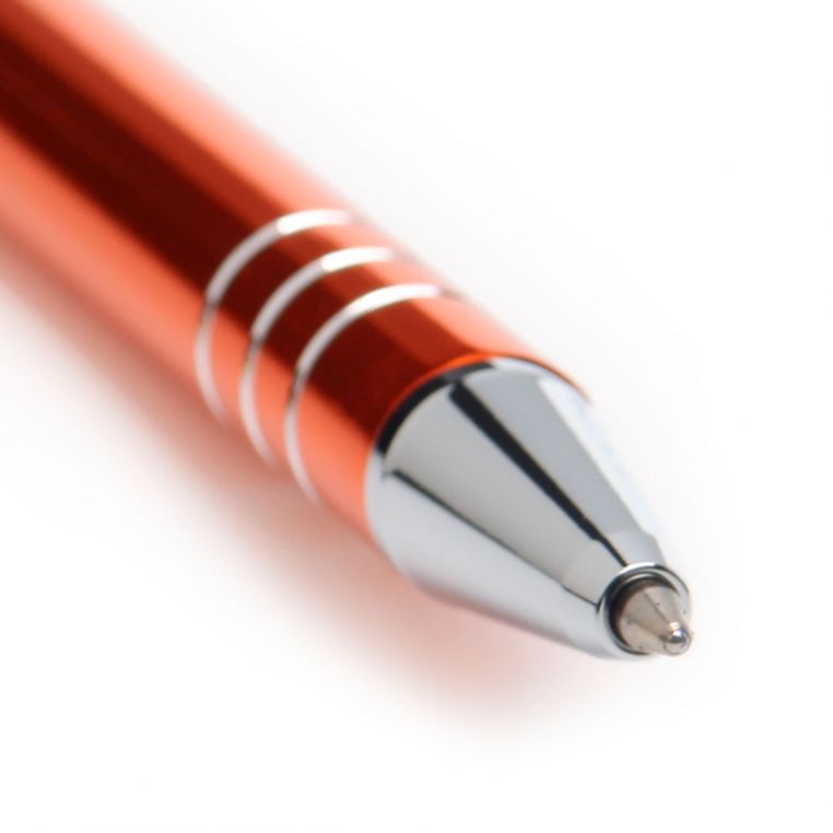 Багаторазова кулькова авторучка високої якості з анодованого алюмінію. Кліп і носик срібного кольору. Змінний стержень типу “Budget”, довжина лінії не менше 1200 м. Механізм – кнопковий. Базовий колір пасти – синій. При виробництві під замовлення можливе встановлення стержня з чорною пастою.