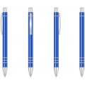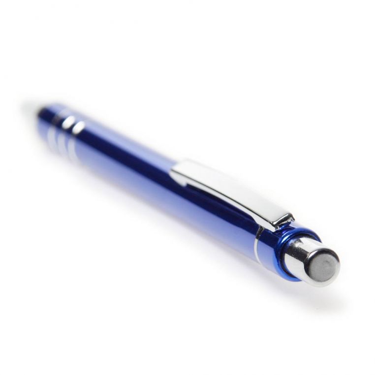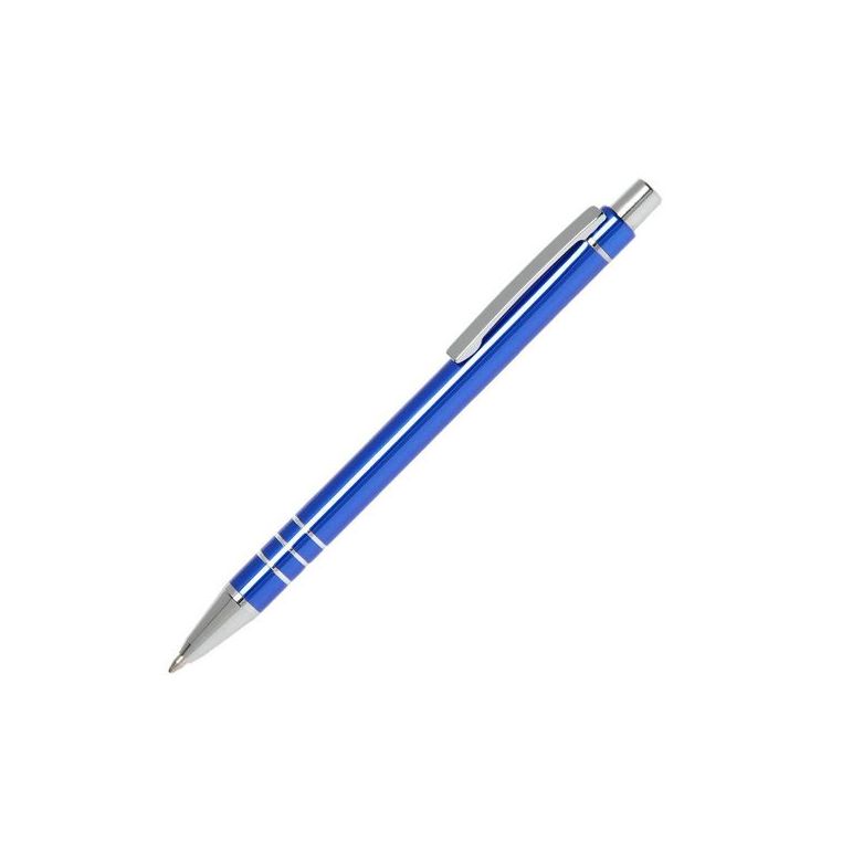 Багаторазова кулькова авторучка високої якості з анодованого алюмінію. Кліп і носик срібного кольору. Змінний стержень типу “Budget”, довжина лінії не менше 1200 м. Механізм – кнопковий. Базовий колір пасти – синій. При виробництві під замовлення можливе встановлення стержня з чорною пастою.