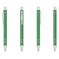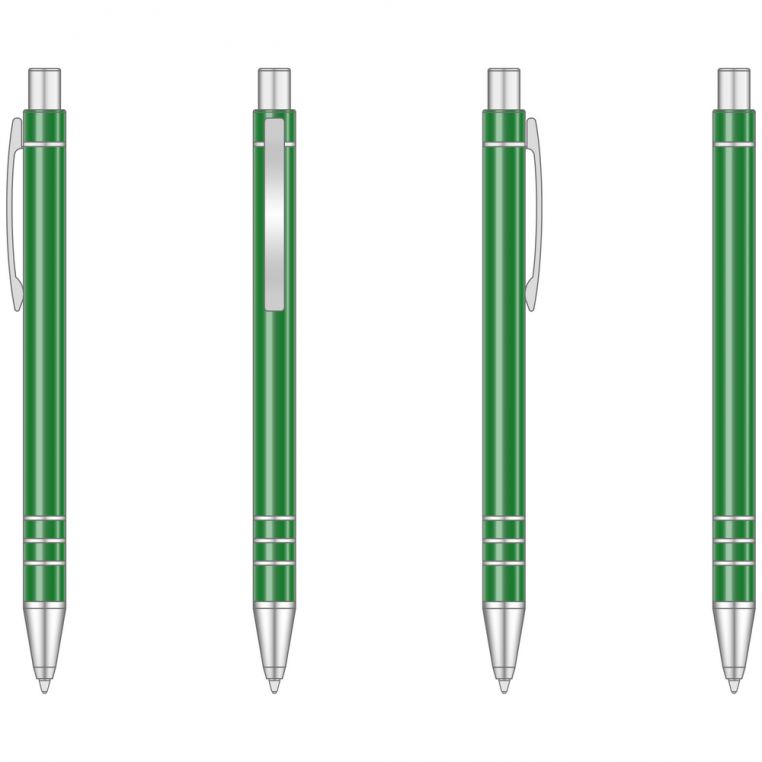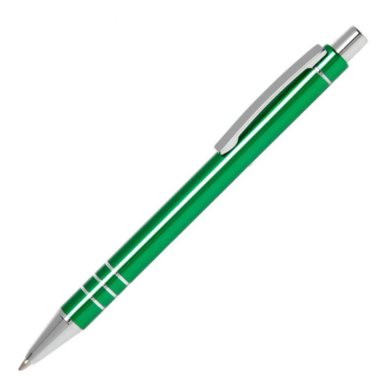 Багаторазова кулькова авторучка високої якості з анодованого алюмінію. Кліп і носик срібного кольору. Змінний стержень типу “Budget”, довжина лінії не менше 1200 м. Механізм – кнопковий. Базовий колір пасти – синій. При виробництві під замовлення можливе встановлення стержня з чорною пастою.