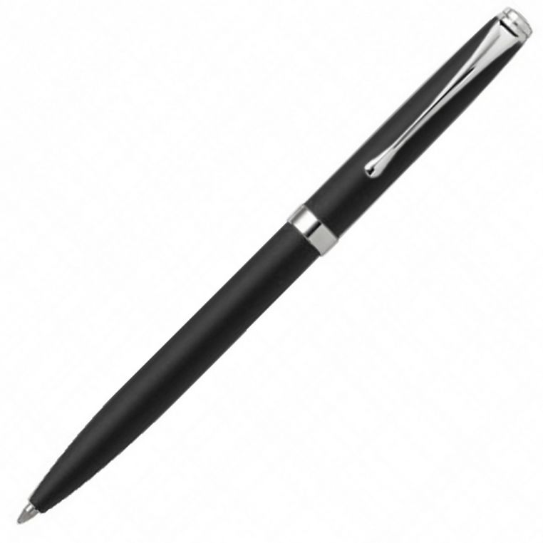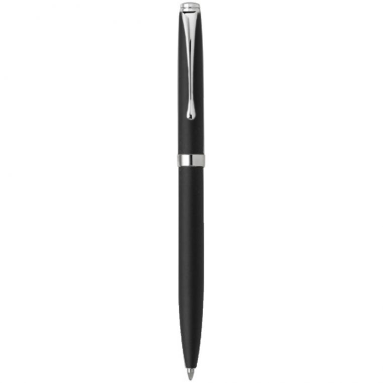 Металева кулькова ручка з матовим корпусом та блискучим полірованим кліпом. Механізм – кнопковий.