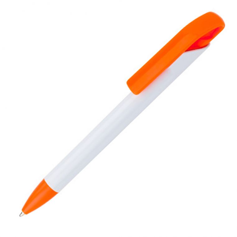 Багаторазова пластикова кулькова ручка з кольоровим кліпом. Велике поле для друку на корпусі та кліпі. Механізм – кнопковий.