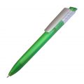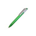 Багаторазова кулькова ручка із широким кліпом сріблястого кольору. Корпус виготовлений із прозорого матового пластику. Механізм – кнопковий.
