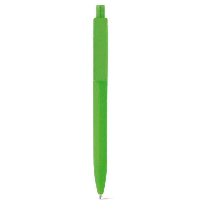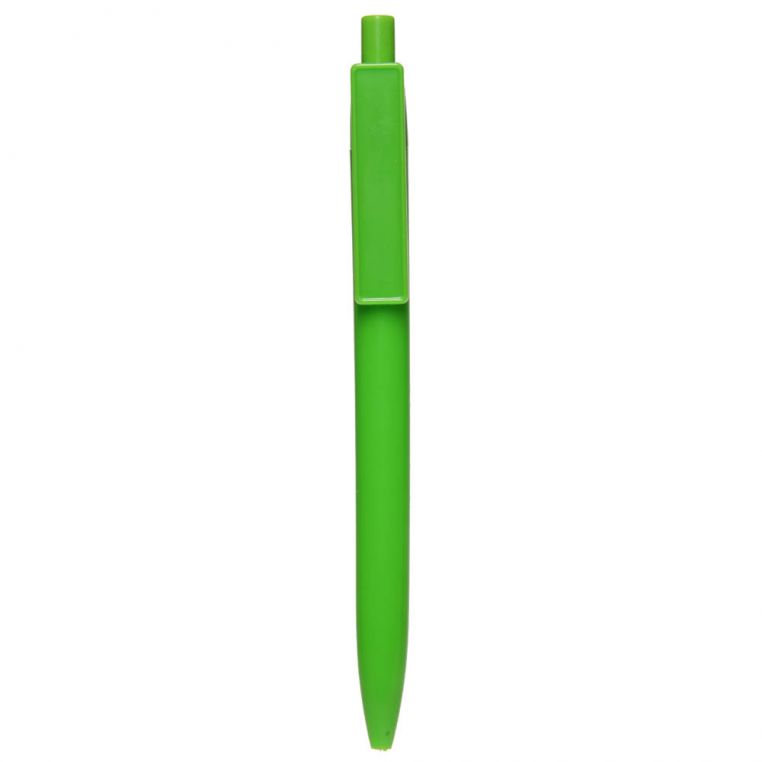 Пластикова кулькова ручка з широким кліпом під брендування смоляною етикеткою. Корпус – глянцевий. Механізм – кнопковий.