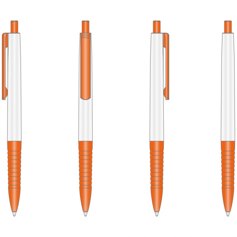Багаторазова кулькова ручка високої якості. Виготовлена зі спеціального пластику, що дозволяє зберегти логотип довше звичайних ручок. Можливість виробництва під замовлення в індивідуальних кольорах. Змінний стержень типу “X-20 Jogger” 1 мм, довжина лінії не менше 2000 м. Механізм – кнопковий. Базовий колір пасти – синій. При виробництві під замовлення можливе встановлення стержня з чорною пастою.