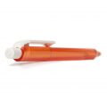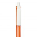 Одноразова кулькова ручка високої якості без можливості заміни стержня. Пластиковий тригранний у перетині корпус. Кнопка та кліп із білого непрозорого пластику. Механізм – кнопковий.