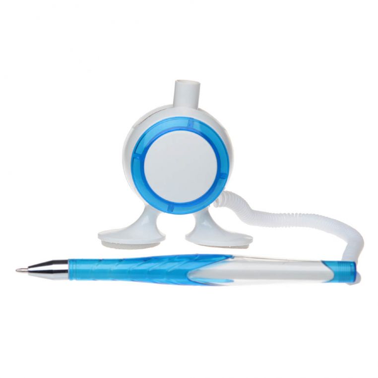 Кулькова ручка на підставці з еластичною пружиною. Біля основи підставка містить дві клейкі подушечки для надійного кріплення. Матеріал: пластик.