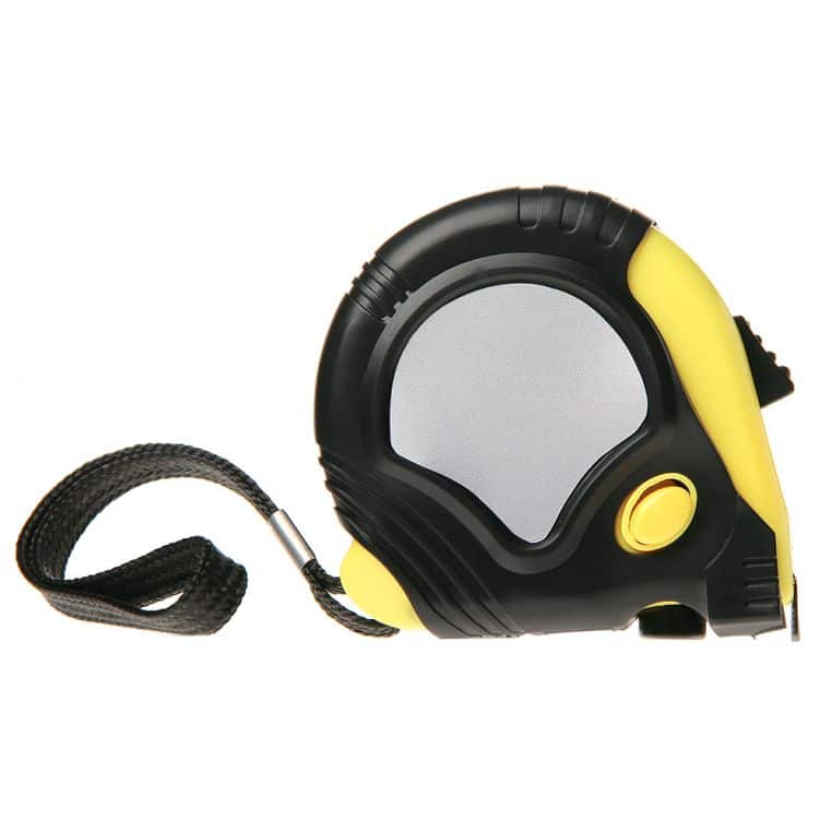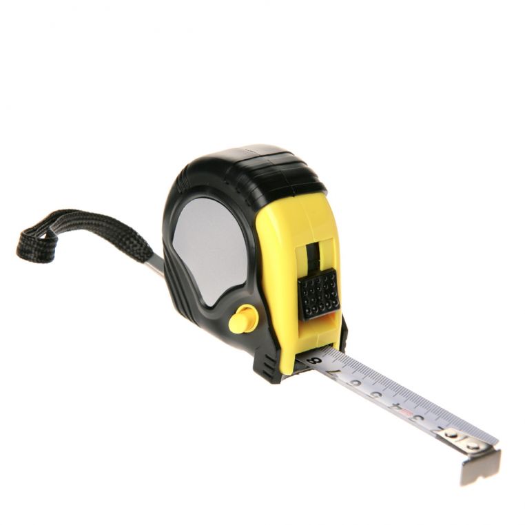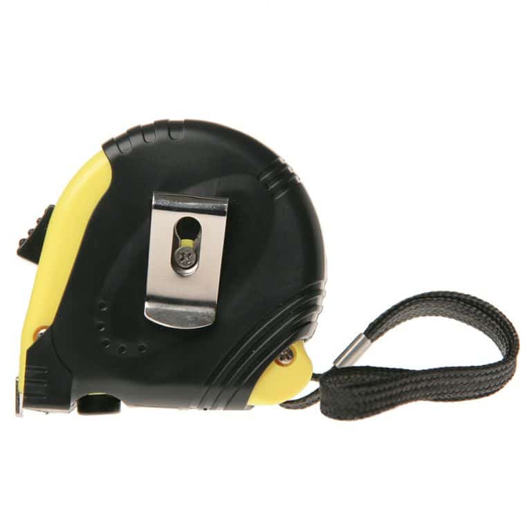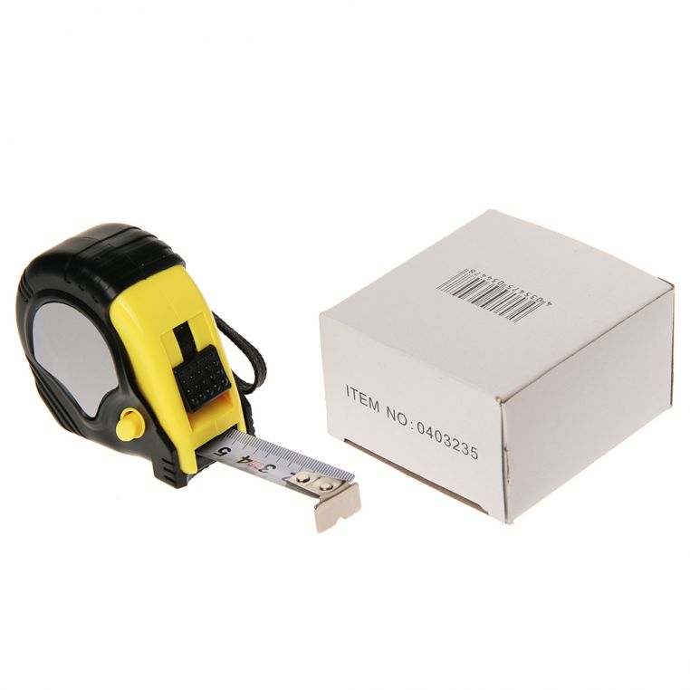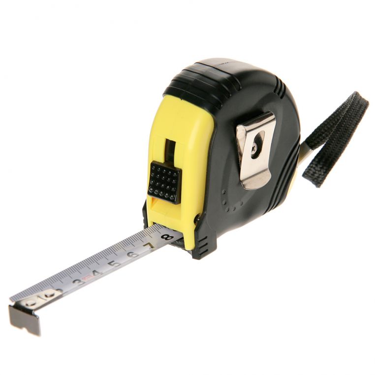 Рулетка з вимірювальною стрічкою білого кольору в сантиметрах, прогумованою поверхнею та автоматичним стопором. Наручний шнурок та кріплення на пояс.