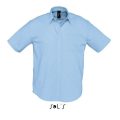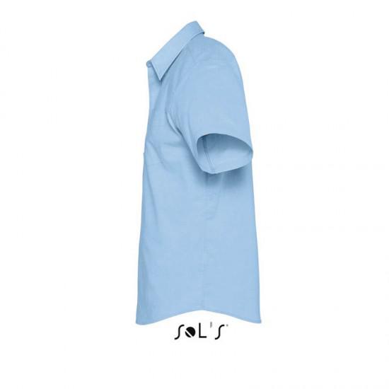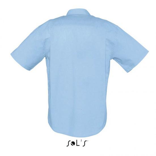 Сорочка чоловіча «Оксфорд» з коротким рукавом SOL’S BRISBANE. Нагрудна кишеня, зліва на спинці 2 симетричні складки, комір на 2 гудзики. Планка з сімома гудзиками тон в тон. Матеріал: 70% бавовна 30% поліестер; щільність: кольорова сорочка 135 г / м2, біла 130 г / м2, фарбована нитка. Варіант для жінок: ELITE-16030