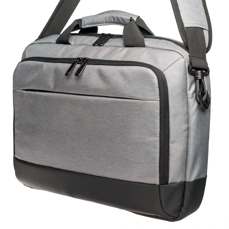 Також ми готові запропонувати вам зручні сумки для ноутбуків з ущільненими стінками і зовнішньою кишенею, на якій розташована металева пластина для розміщення логотипу вашої компанії за допомогою лазерного гравіювання. Ці сумки виготовляються з поліестеру, мають стильний вигляд та пасують до будь-якого одягу. За бажанням ви можете прикрасити рекламними зображеннями і їхню поверхню. Для цього зазвичай використовується технологія термотрансферу.