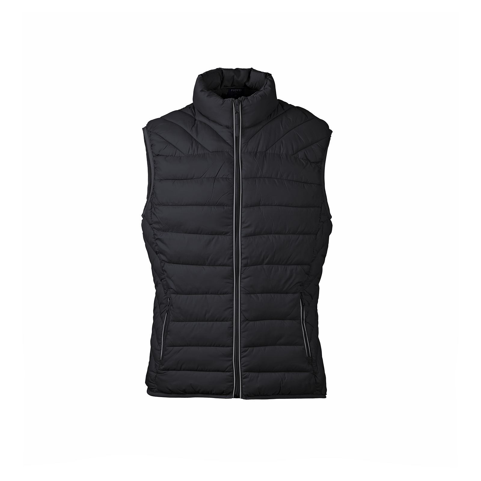 Ергономічний жилет, 100% нейлон , дві зовнішні кишені , набивка поліестер з еффєктом пера, воріт стійка, світловідбиваюча стрічка над блискавкою, внутрішня підкладка нейлон сірого кольору.