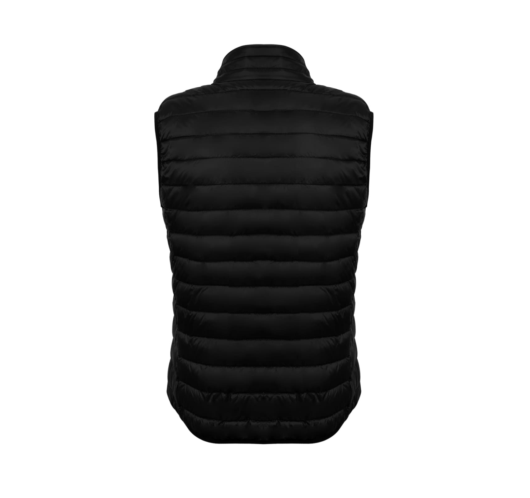 Легкий жилет, 100% нейлон, дві зовнішні кишені, набивка поліестер з еффєктом пера, воріт стійка внутрішня підкладка нейлон сірого кольору, зручно одягати під верхній одяг.